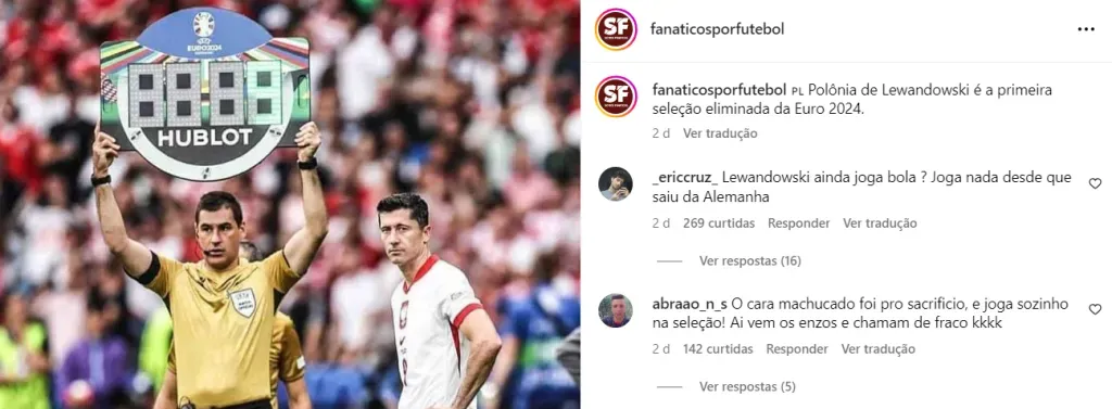 A Polônia entra em campo já eliminada. Foram dois jogos na Eurocopa 2024 e duas derrotas. Lewandowski, grande jogador polaco, lesionado, atuou por poucos minutos.