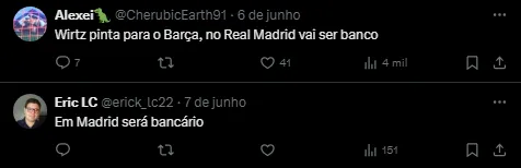 Por outro lado, Arda Güler é outro exemplo recente que chegou ao Santigo Bernabéu. Além dele, Florian Wirtz, craque da Alemanha e do Bayer Leverkusen é o próximo alvo da equipe espanhola.