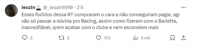 É informado pela mídia de fora que o Racing, da Argentina, está em conversas para contratar um grande nome do elenco do Corinthians pensando no ano de 2024.