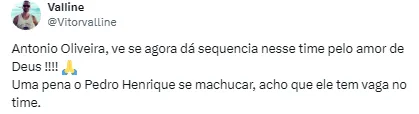 António comentou que Pedro será reavaliado pelo departamento médico do clube nesta segunda-feira (29), mas tratou como “um a menos” para a sequência da temporada.