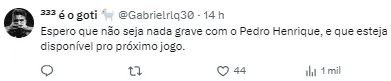 Diante da preocupação com o jogador, o treinador comentou sobre as opções que possui no banco de reservas dependendo da gravidade da lesão de Pedro Henrique.