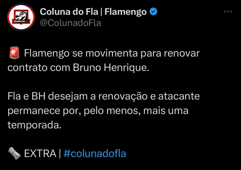 Segundo informações do jornal Extra e também reportado pela Coluna do Fla, o Flamengo está se movimentando para renovar o contrato de Bruno Henrique.
