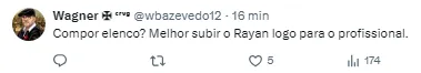 Após a informação ser divulgada, a torcida vascaína se manifestou e não gostou nada do fato de o possível reforço ser para “compor elenco”.