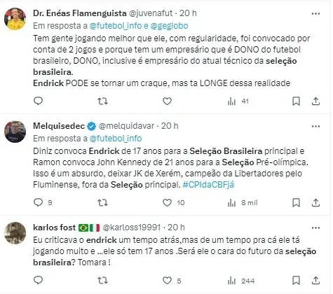 “Mas Endrick será superior a todos os atacantes, disso não tenho dúvida alguma. O que esse jovem fará na Europa, vocês não têm ideia. Não sei como é sua mentalidade, já que não o conheço pessoalmente, mas vocês não têm noção do que esse garoto é capaz de alcançar”, afirmou Neto.