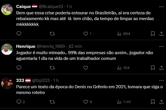 Parte do plantel acredita que o diretor tem um estilo mais “grosseirão”, conforme destaca o jornalista Tiago Salazar, hoje na Gazeta Esportiva. Atletas estão incomodados como o veterano age no clube.