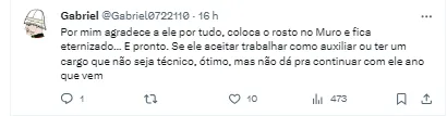 Alguns vão na linha de que o trabalho precisa de uma continuidade, já que tem o elenco nas mãos. Outros reconhecem que ele ajudou bastante a equipe na fuga da zona de rebaixamento, mas que é importante ir atrás de outro técnico.