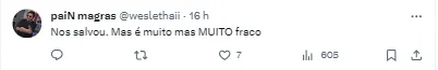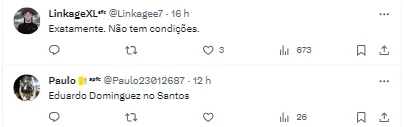 “Para de ser lunático cara, se tirar ele vai trazer quem? Marcelo tem o grupo na mão, tem que confiar no trabalho.” , “Nos salvou. Mas é muito mas MUITO fraco” , “Muito teimoso e faz muitas escolhas erradas” , “Tem pateta que defende esse cara. Fraquíssimo (…)”, escreveram alguns torcedores do Santos no Twitter.