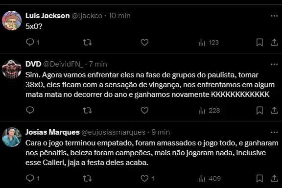 “A verdade é que a gente tinha na cabeça que se fosse contra o Palmeiras, a gente ia ganhar”, destacou o atacante quando questionado sobre o troféu levantado pelo Soberano.