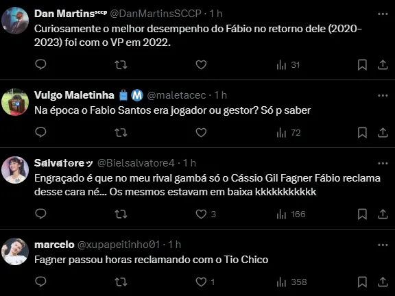 “O problema era que ele contava uma história aqui, tinha coisa que soltava na imprensa. Jogador estava voltando de lesão, mal fisicamente, ele falava e empurrava culpa para 2 e 3”, completou Fábio Santos.