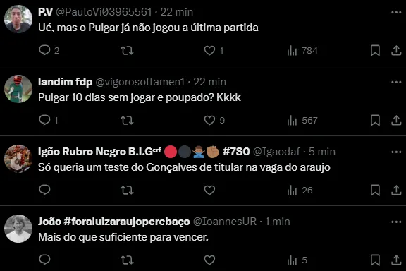 O zagueiro Fabrício Bruno e o volante Erick Pulgar tendem a serem poupados por Tite e comissão técnica. A ver as cenas dos próximos capítulos e se de fato isso vai ser confirmado.