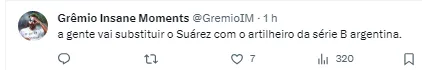 E o clube segue atento no mercado. Segundo informações do programa Tácticamente Imperfectos, que cobre o futebol paraguaio, o representante do jogador Alex Arce, atacante paraguaio e artilheiro do Nacional B na Argentina, comentou que o jogador despertou interesse do Grêmio.