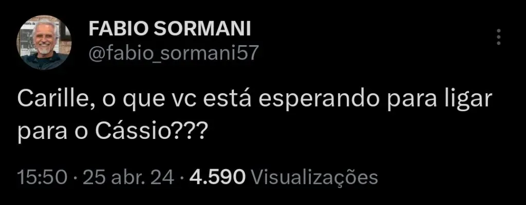 Por meio de seu perfil oficial no X, Sormani pediu para que Fábio Carille, atual técnico do time da Baixada, ligasse para o arqueiro visando trazê-lo para a Vila Belmiro.