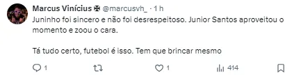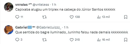 Destaque do Botafogo e na classificação da equipe para a fase de grupos da CONMEBOL Libertadores, o atacante Júnior Santos usou as redes sociais para ironizar Juninho Capixaba, do Red Bull Bragantino, adversário da equipe na última quarta-feira (13).