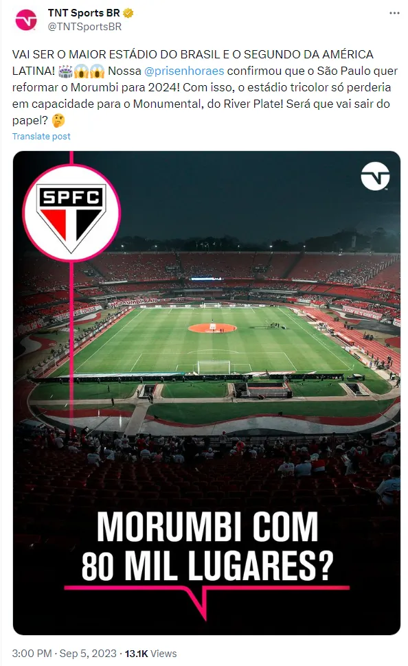 De acordo com informações da jornalista, Priscila Senhorães, da TNT Sports, o clube tem interesse em aumentar a capacidade do estádio em 2024, para pouco mais de 80 mil lugares. Isso o tornaria o maior estádio do Brasil e o segundo maior da América Latina, atrás apenas do Monumental de Núñez, do River Plate.