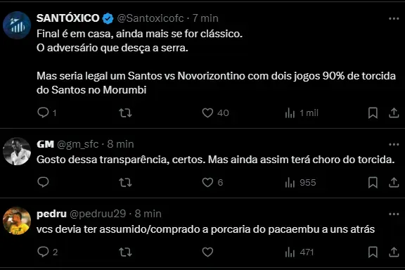 “Independentemente do adversário na decisão do Paulistão, o Santos mandará seu jogo na Vila Belmiro”, informa o clube do Litoral Sul através dos canais de comunicação oficiais.