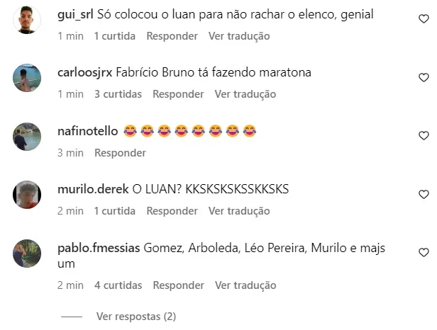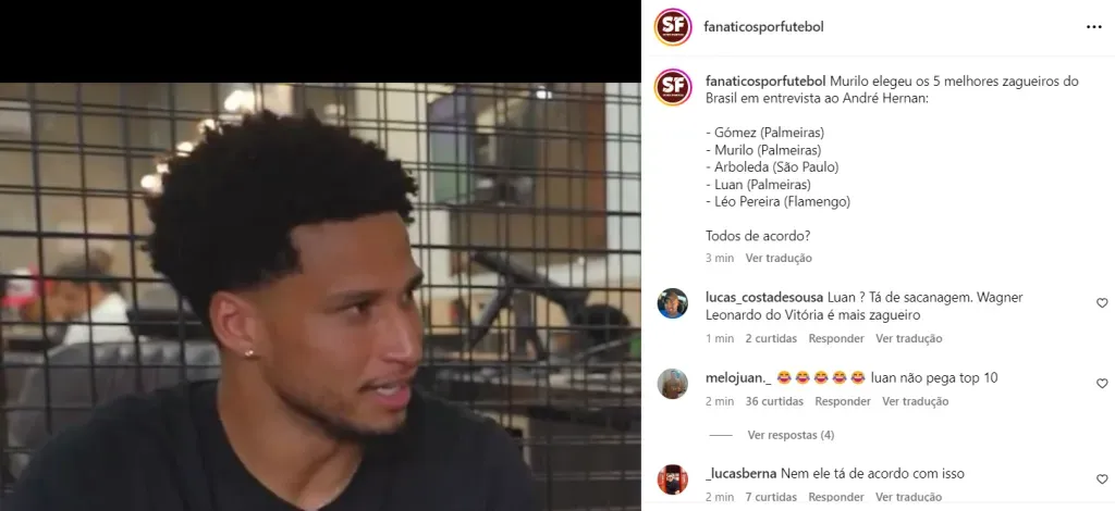 Sobre os zagueiros, Murilo entende que está presente entre os cinco melhores do país, ao lado de Gómez, do Palmeiras, Luan, também do Verdão, Léo Pereira, do Flamengo, e Aborleda, do São Paulo.