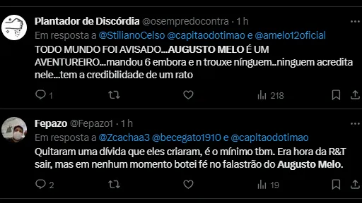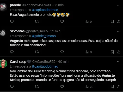 No entanto, o atual presidente do Timão, Augusto Melo, crê que consegue em torno de R$ 100 milhões e travam as conversas do antecessor. Essa discordância rende frutos e o novo mandatário tem negociações em andamento.