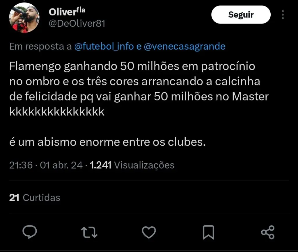 Vale relembrar que a parceria entre BRB e Fla se iniciou em 2020, quando o banco se tornou na época o maior patrocínio da história do clube. Recentemente, eles perderam o posto de Master para a casa de apostas esportivas Pixbet.