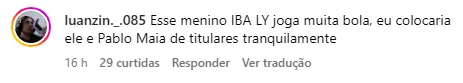 Iba por sua vez, ainda não teve chances no profissional. Neste ano, atuou pelo sub-20 da equipe em seis oportunidades e com uma assistência. Na última temporada, participou de 23 partidas e anotou três assistências.