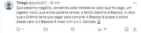 Com isso, para o negócio ser oficializado, resta ao time gaúcho pagar uma ‘significativa dívida’ ao jogador colombiano.