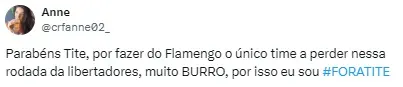 Já na terça-feira, a torcida se manifestou nas redes sociais por conta do comunicado. Nesta quarta (24), após a derrota, torcedores ficaram ainda mais impacientes já que a equipe não contou com a maioria de seus titulares. A hashtag levantada pela torcida no Twitter foi de “#ForaTite” e “ParabénsTite” foi um dos assuntos mais comentados.
