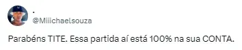 “Essa partida está 100% na sua conta, parabéns Tite”;