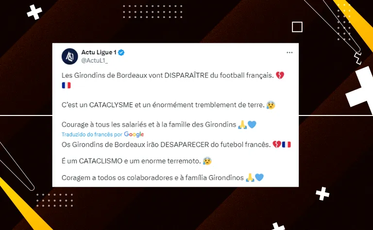 O Bordeaux entrou em estado de falência em 2021 após uma grave crise financeira. A equipe girondina foi rebaixada para a segunda divisão em última lugar ao fim da temporada 2021/2022.