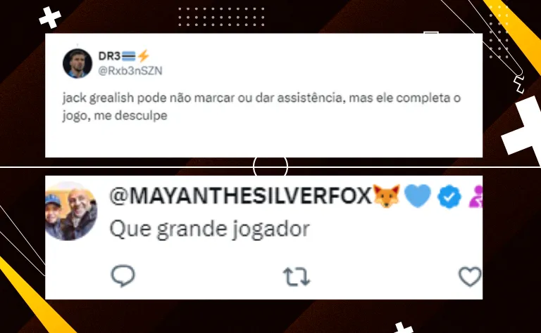 Jack Grealish, camisa 10 do time, deixou de lado nomes com quem atua na Seleção da Inglaterra como Jude Bellingham, do Real Madrid e Phil Foden, seu companheiro de equipe, e surpreendeu ao escolher Daniel Crowley, do Notts County como melhor jogador jovem com qual já atuou.
