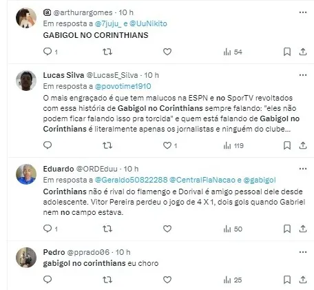 “Gabigol, você está fora, o Tite não te quer. Você pode jogar no time que quiser, eu queria que você viesse para o Corinthians, mas você não vai jogar [no Flamengo], eles vão te humilhar aí, sai enquanto é tempo”, finalizou.