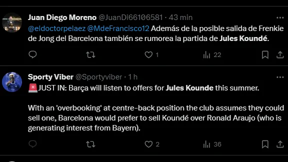Nascido em Paris, Koundé tem vínculo contratual assinado com os culés até junho de 2027. Mesmo com um longo acordo, a tendência é que seja negociado na janela do verão europeu.