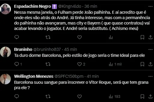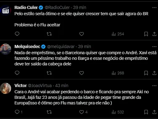 Agora, o alvo é André. O craque do Fluminense escolheria o time blaugrana ao invés do Real Madrid, por exemplo, e é avaliado pelo Tricolor em 35 milhões de euros (R$ 186 milhões).