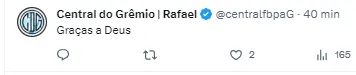 O jogador chegou neste ano no Grêmio e atuou somente em seis partidas, com nenhum gol marcado.