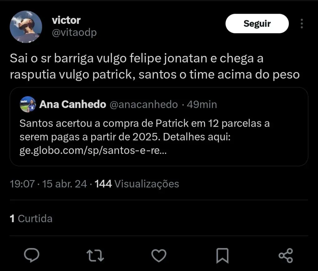 Para concluir a chegada de Patrick, o Peixe precisará pagar uma quantia considerável em dinheiro. Ele chega como um dos principais reforços do time para a Série B, e a princípio chega para brigar por posição.