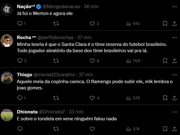 Venê informa: “O lateral esquerdo Eduardo Gabriel, de 18 anos e que atuou pelo Sub-20 do Flamengo em 2023 e não seria aproveitado em 2024, foi negociado ao Santa Clara, de Portugal”, publicou.