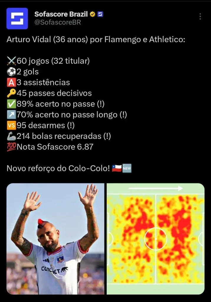 Através de suas redes sociais oficiais, a equipe do Colo-Colo anunciou de forma oficial a contratação de Arturo Vidal.
